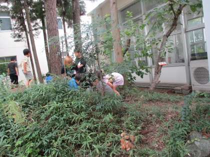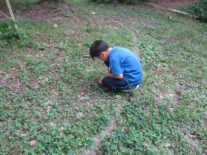 バッタやダンゴムシが見つかるたびに楽しそうに
