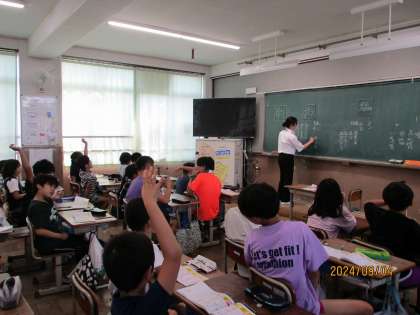 9月より、教育実習の先生が来ています。休み時間や放課後におしゃべりをしたり、遊んでもらったりして、子どもたちは嬉しそうです。今日は、新出漢字を一緒に学びました。今後もいろいろな学習を担当してもらいます。