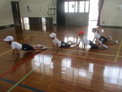 体育のまねっこあそび楽しんでいます。