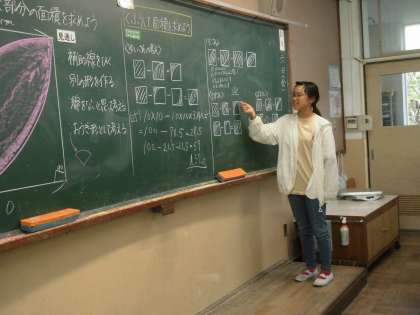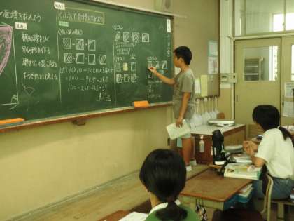 「円の面積」の学習です。工夫して面積を求める方法を説明してくれました。