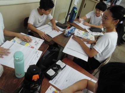 調理実習に向けてグループで役割をきめたり手順について確認し合ったりしました。