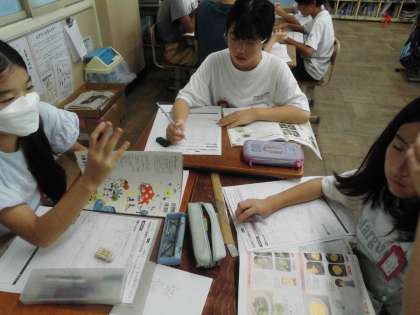 調理実習に向けてグループで調理の手順を確かめたり野菜の切り方を確認したりしました。