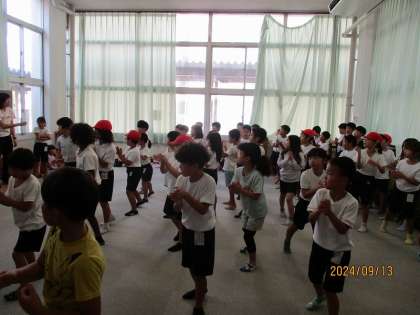 今日は気温が高すぎるため,2校時にプレイホールでダンスの練習に取り組みました。
