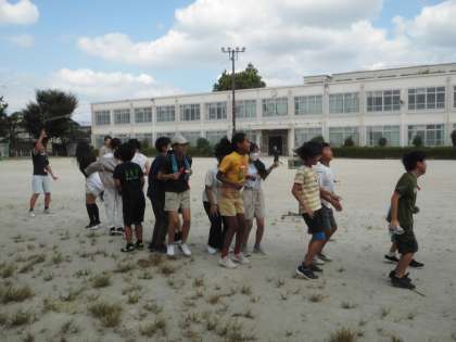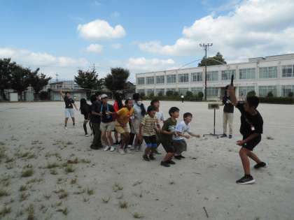 みんなで「せ〜の!」でとびます。たくさんの人数なのでタイミングをあわせるのがむずかしいなか、声を掛け合い、頑張りました。