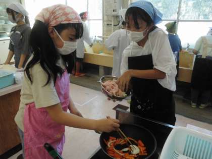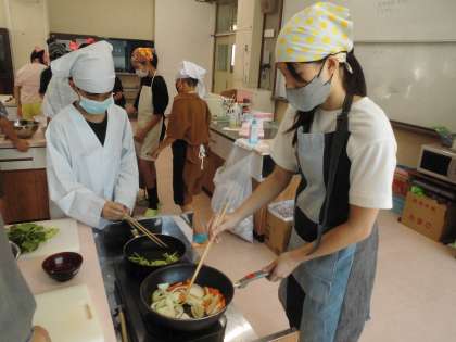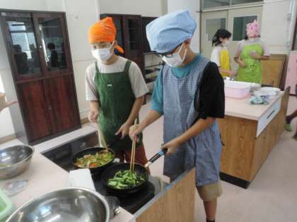 協力して、声を掛け合って調理をしています。いいね。