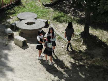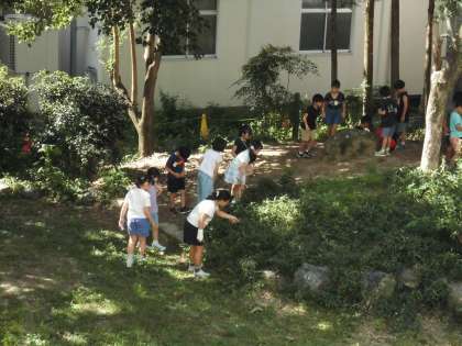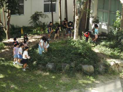 中庭で虫探しをしました。暑さに負けず、元気いっぱいの3年生です。