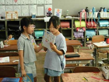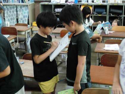 学習したフレーズを使って、友達と何度も繰り返し練習しました。友達の好きな色や食べ物、果物、スポーツを知りました。