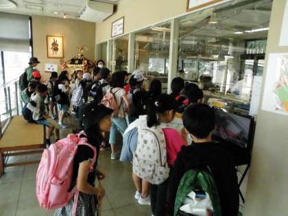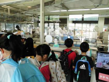 八つ橋工場では、八つ橋のできる工程を見学しました。