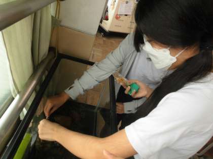 かわいいかわいい亀にほんのちょっとおやつをあげています。かわいがってくれてありがとう!
