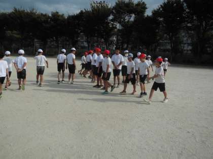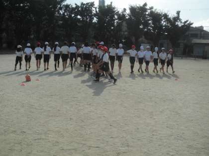 今日ははじめて運動場で練習しました。暑い中よく頑張りました。
