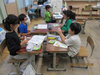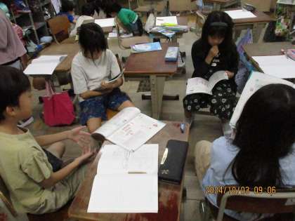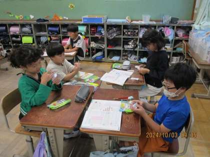 九九の練習をグループで取り組んでいます。