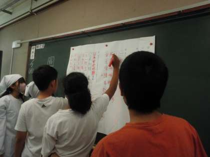 熟語の学習をしました。授業が終わってからもみんなが集まって、熟語を書き込んでいました。