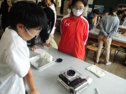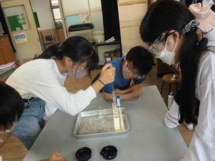 「水よう液と金属」の学習です。金属に薄い塩酸を加えて変化の様子を見ました。とけて見えなくなった金属はどうなったのかを調べる実験をしましt。