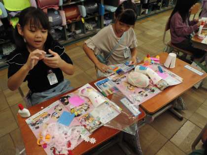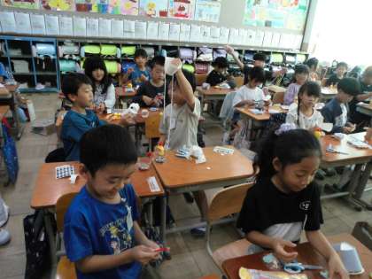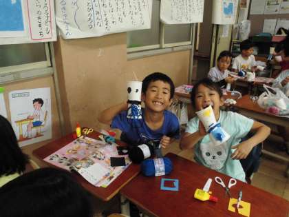 その動きから、形や色を想像し、楽しいパペットを作っていました。