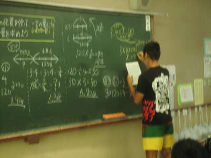 図に書いたり式に表したりして、自分の考えを伝えています。