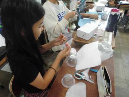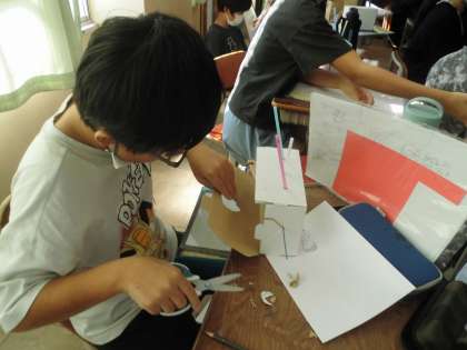 「くるくるクランク」の学習です。アイデアスケッチを生かして形にしています。
