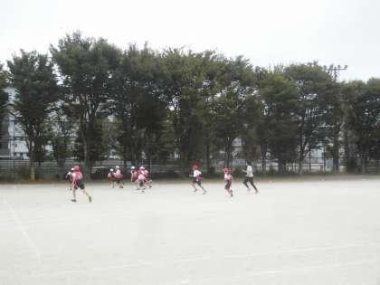 練習試合をしています。声を掛け合ってパスを出していますね。いいね!