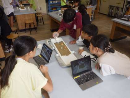 流れる水のはたらきによって土の削れる様子を観察するために、