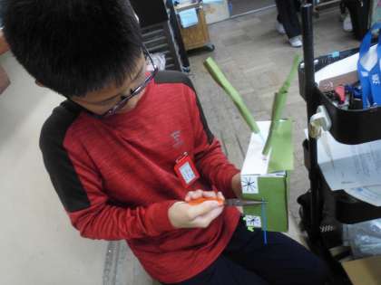 「くるくるクランク」の学習です。思い思いに形を作ったり色を塗ったりしていますね。よく頑張っています。