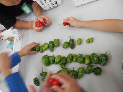 あおぞら学級でピーマンがたくさんとれました。数を数える学習をしました。みんな真剣に数をかぞえていました。