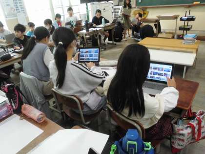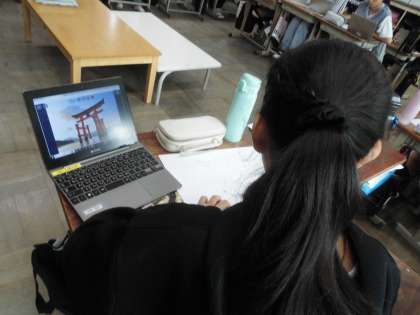 版画のテーマとして「日本の世界遺産の建物」に取り組みます。まずはどのような世界遺産があるのかを調べました。