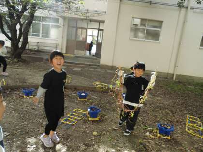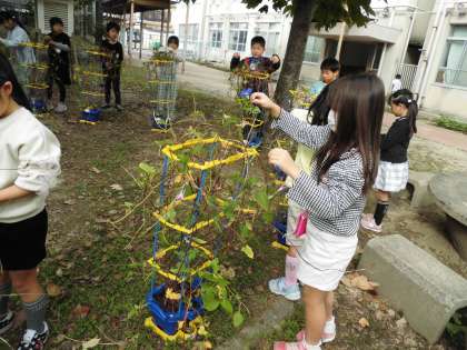 1粒の種だったアサガオがこんなに大きくなって、みんなびっくりしていました。