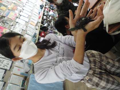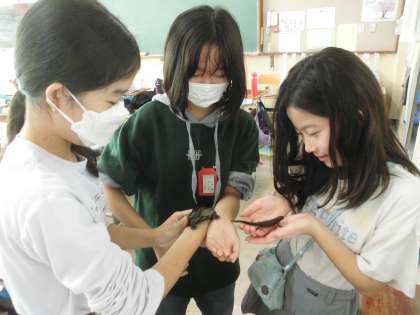 教室にいる生き物たちです。みんなでお世話をして可愛がっています。遊んだ後はもちろんきちんと手洗いをしています。