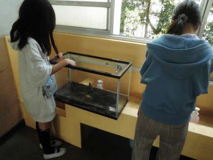 休み時間に生き物のお世話をしています。いつも気にかけてくれてありがとう!