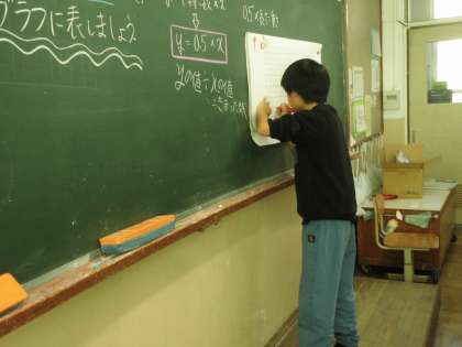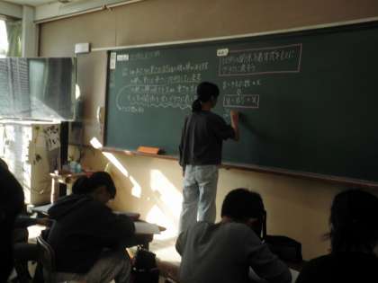 「比例と反比例」の学習です。自分の考えをみんなに伝えています。