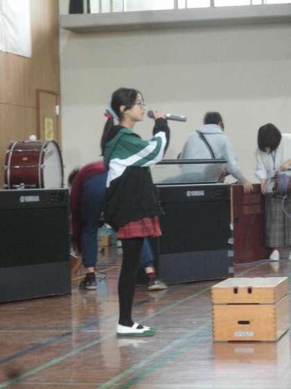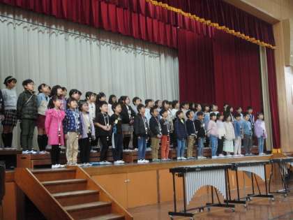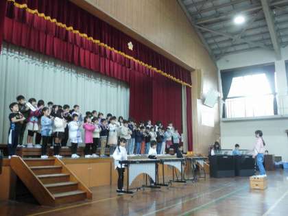 曲紹介を頑張ってくれる6年生。次は3年生の発表です。元気いっぱいの歌と合奏。体育館に響いていました。