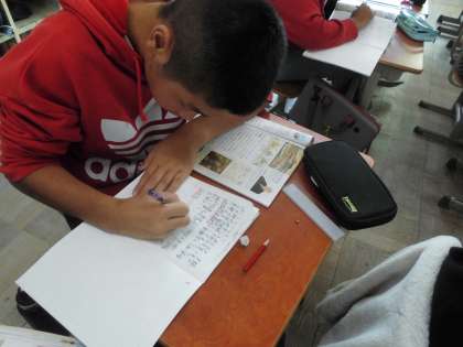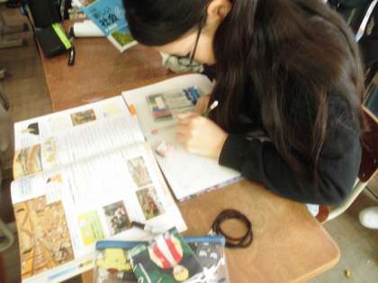 「町人の文化と新しい学問」の調べ学習をしています。教科書や資料をしっかり読み、丁寧にまとめています。よく頑張っています。
