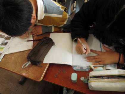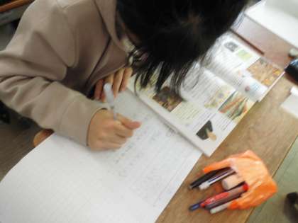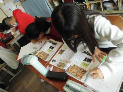 「町人の文化と新しい学問」の調べ学習に取り組んでいます。工夫してノートにまとめていますね。いいね!