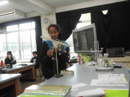 実験用のてこを使って水平につり合うようにチャレンジ!