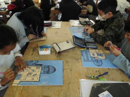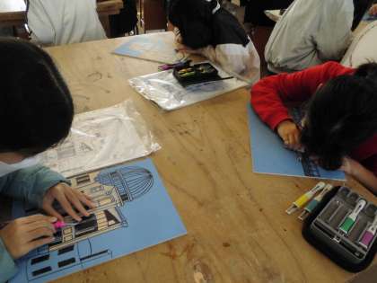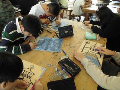 今日は図工室で版画に取り組みました。みんな集中して取り組んでいます。