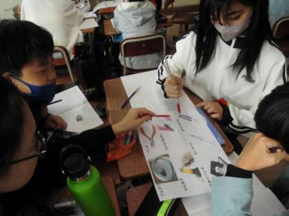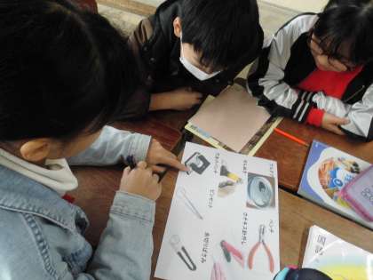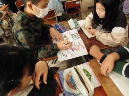 「てこを利用した道具」について考えています。グループで話し合いました。
