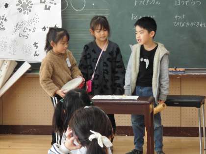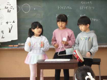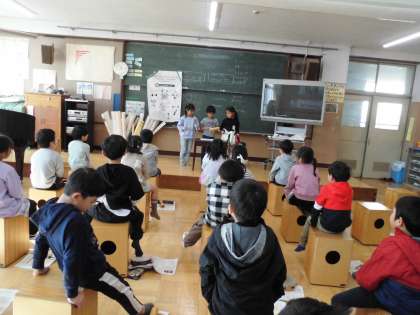 グループで作った打楽器の音楽をみんなの前で、発表しました。