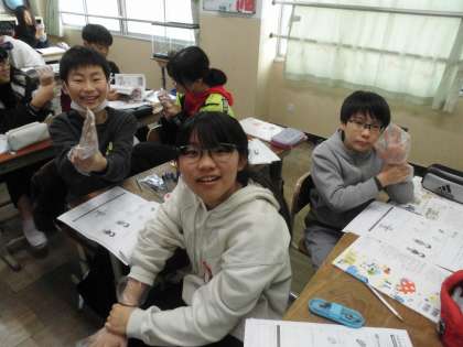 ポリ袋を密着させるのと袋に空気を入れるのとではどのような違いがあるのかを確かめました。