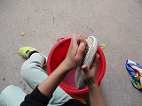 週末に、1週間使った上靴を、自分たちで洗っています。