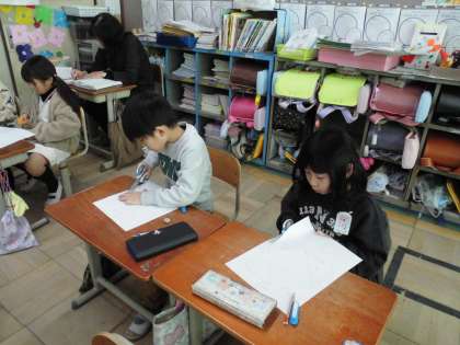だれにどんな手紙を書こうか考えながら、封筒づくりをしました。