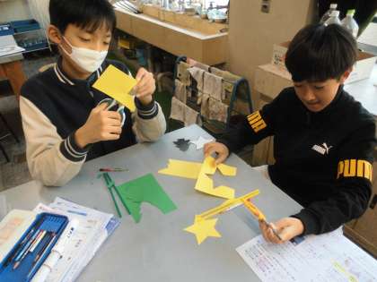 つり合いを利用した飾り、「モビール」を作りました。
