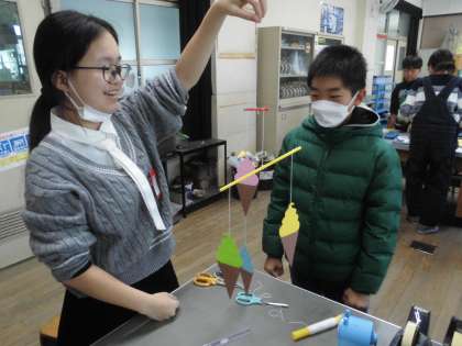 上手くつり合う可愛いモビールが作れたようです。やったね!