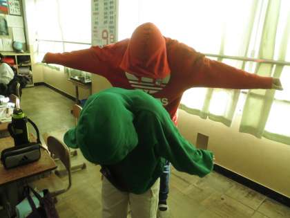 服の色がクリスマスカラーだったので思わず、クリスマスツリーになってみました。楽しい休み時間です。