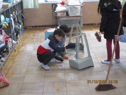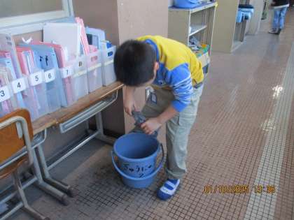 掃除時間も楽しんで!雑巾がこんなに黒くなったと嬉しそうに見せてくれました。いつもありがとう。