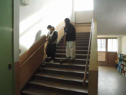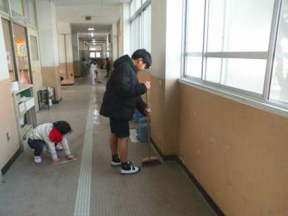 協力してそうじをしています。ありがとう!