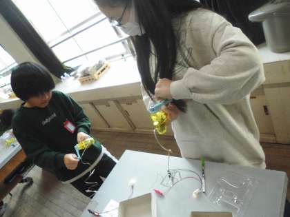 豆電球が光るか、モーターが回るかを確かめました。