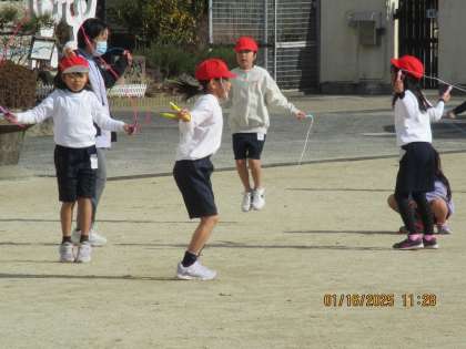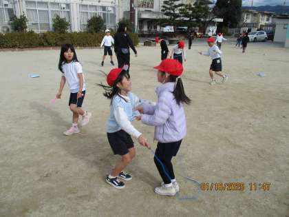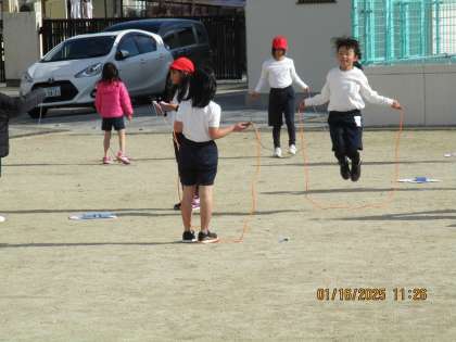 友だちと一緒に跳んだり、教え合ったりしていました。とてもいい姿でした。