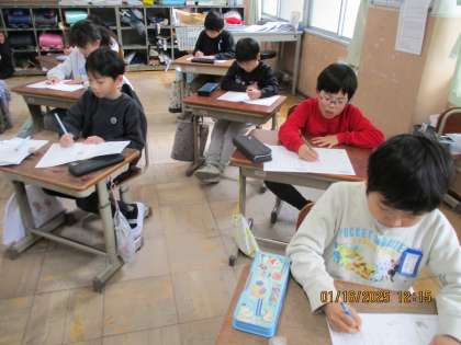 国語で「にた意味の言葉、反対の意味のことば」の復習をしました。静かに集中して取り組むことができました。