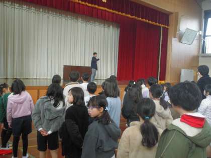 今日は児童集会がありました。児童会本部の人たちが中心になって進めていきました。