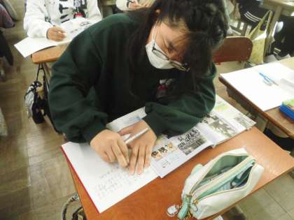 集中して頑張って調べています。ノートの書き方にも工夫が見られます。