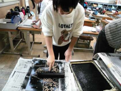 冬休み前に彫った版画を刷りました。